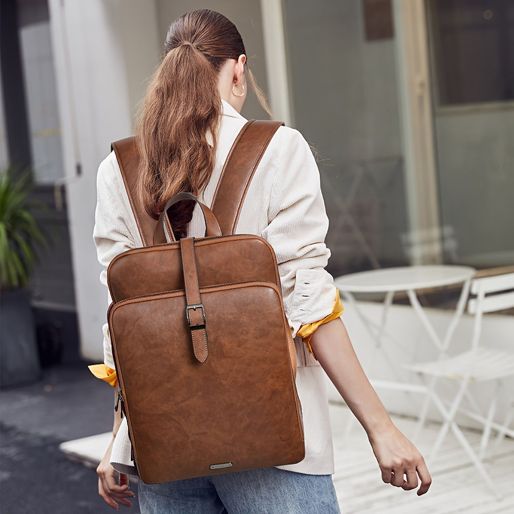 Top-grain leather. Daily Commute, Adjustable Shoulder Strap Casual Laptop Backpack-styled case. 15.6 in Laptop Case. Care Instructions: Wet Wipe Clean. Do not submerge in water. Adjustable strap. Magnetic closure. Polyester lining.