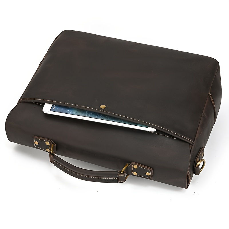 Top-grain cowhide leather. Adjustable Shoulder Strap.